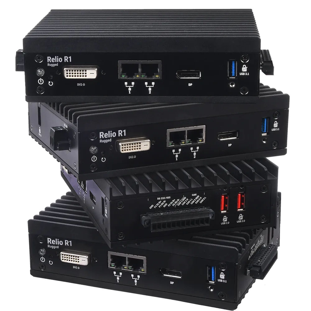 The UL Certified Relio™ R1 Rugged Industrial Computer is the latest addition to the industry-leading Relio embedded computer line. The R1 Rugged incorporates the newest generation of industrial processors and a modernized video interface. With versatile communication options for CAN, Wi-Fi, and RS-232/485, the R1 Rugged features (2) locking USB 3.1 ports, (2) locking USB 2.0 ports, (2) Gigabit Ethernet ports, and an extreme, wide operating temperature range of -40°C to +71°C.