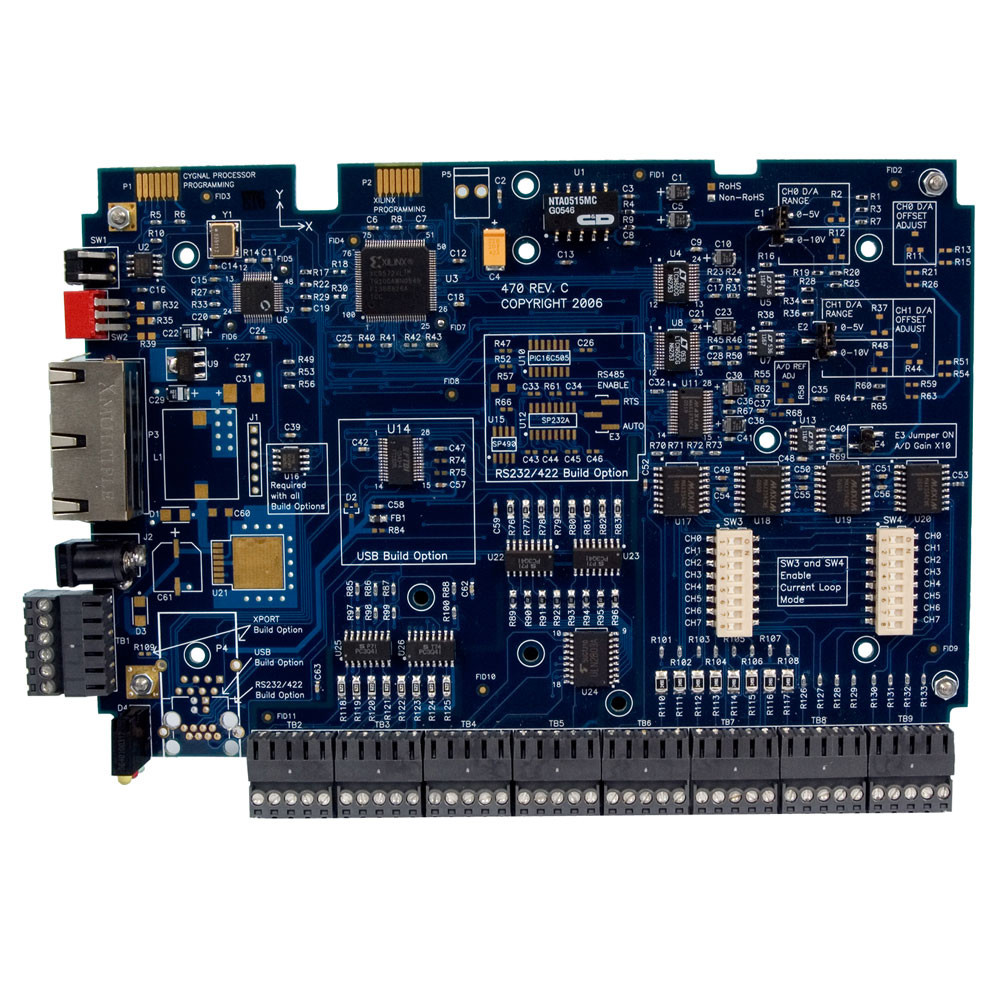 The SeaI/O-470N-OEM adds eight differential or 16 single-ended 12-bit inputs, two 12-bit D/A output channels, eight optically isolated inputs, and eight open-collector outputs to your SeaI/O network. Compatible with all SeaI/O base units (Ethernet, USB, RS-485, RS-232), the SeaI/O-470N-OEM connects easily using an RS-485 input. Cabling is accomplished via the units RJ45 connector or removable screw terminals. RS-485 line conditioning allows easy installation of termination and pull-up/pull-down resistors.