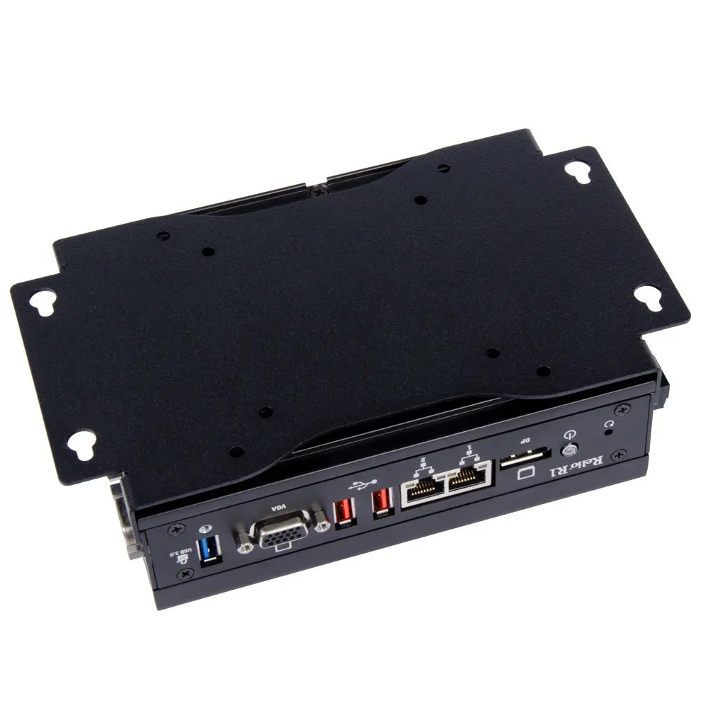 The KT134 VESA mounting bracket provides an easy solution to mount a Relio R1 industrial computer to the back of a panel-mount LCD display. This allows you to choose the ideal display for your application and create a rugged Panel PC solution. The KT134 is VESA MIS-D compliant with both 75 x 75 mm and 100 x 100 mm mounting options. The VESA mounting holes accept standard M4 machine screws. The bracket includes spacers that provide an air gap between the LCD panel and the bracket to maintain proper passive cooling of the Relio R1 computer. Once the KT134 is VESA mounted, four metal tabs and screws securely mount the Relio R1 enclosure to the bracket.
