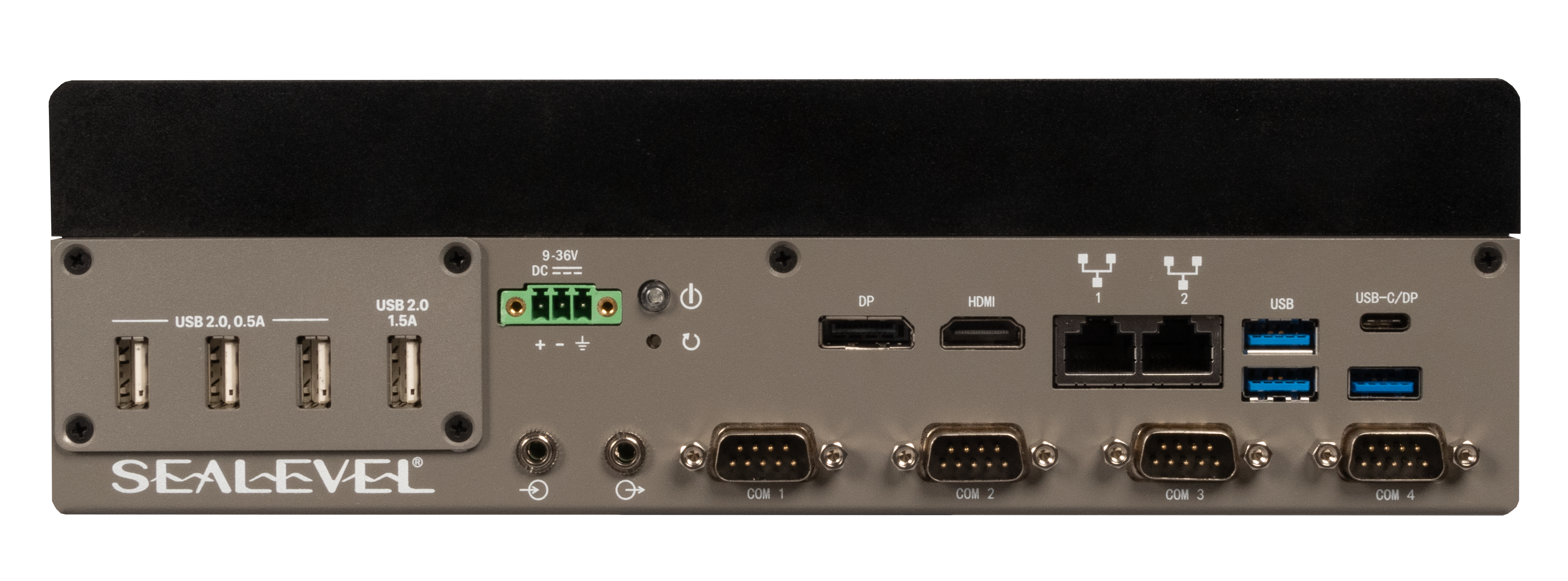 With flexible connectivity designed by the leader in I/O engineering, the Flexio Fanless Industrial Embedded Computer combines industrial processing with application-specific I/O to meet requirements. Standard I/O includes (4) RS-232/422/485 serial ports, (3) USB 3.2 Gen2 ports, (1) USB 3.2 Gen 2 port Type-C (capable of DisplayPort), (1) Gigabit Ethernet port (1) 2.5 Gigabit Ethernet port, (1) DisplayPort, and (1) HDMI port. Flexio computers offer I/O configurations for a variety of USB to serial, USB to digital, and USB to analog-based control systems.