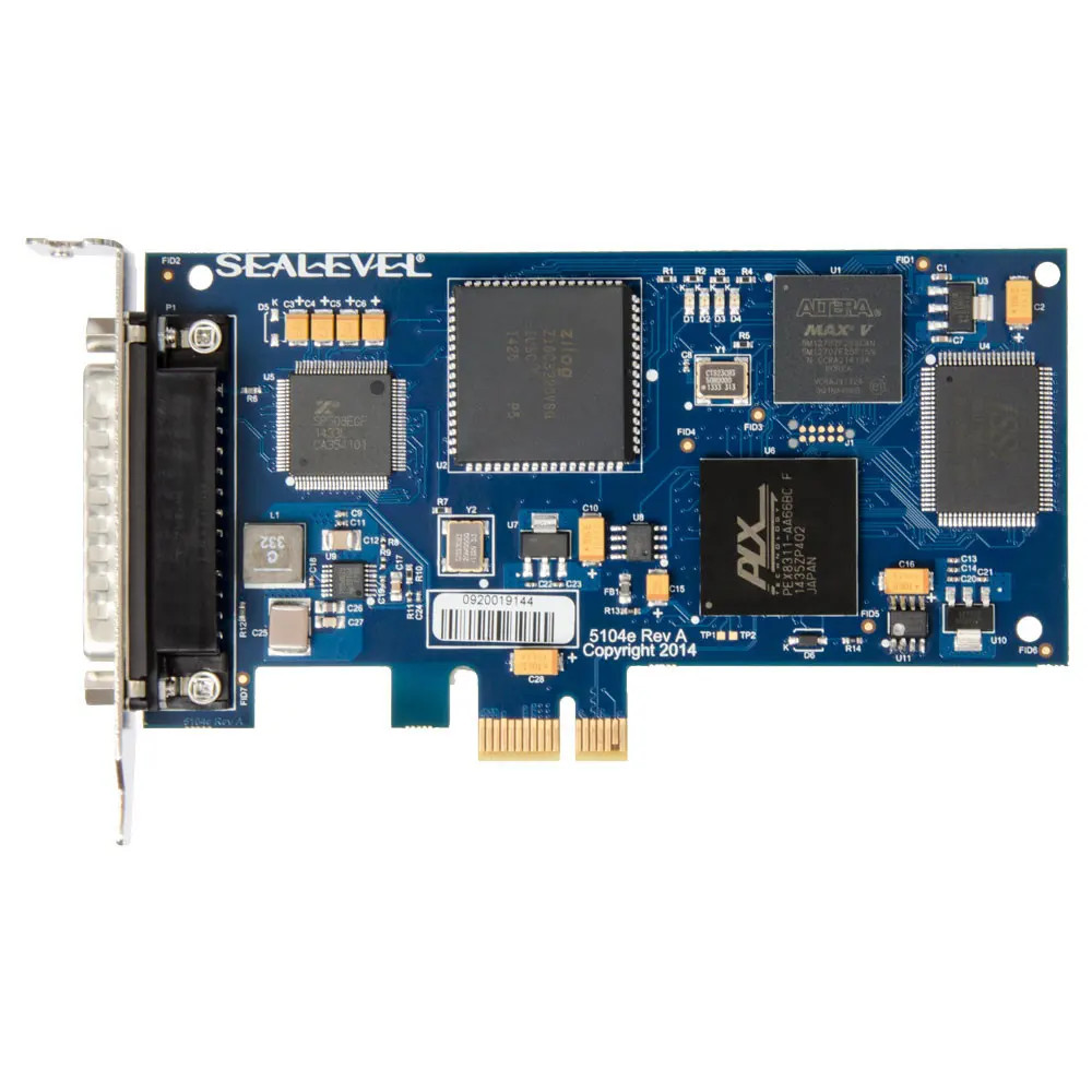 Software support, critical for successful synchronous communication development, is provided through Sealevel’s SeaMAC synchronous serial driver. HDLC/SDLC protocols are supported as well as certain configurations of Monosync, Bi-sync and Raw modes. Existing customers of the PCI version simply need to update to the latest SeaMAC software driver to ensure their application will continue to operate as expected. The 5104e includes an optional OEM security feature that prevents unauthorized boards from being used in an application.