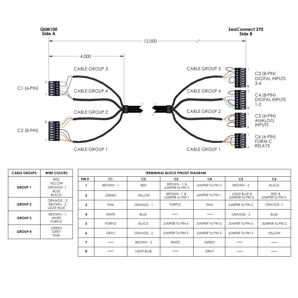 The QuickStart module includes a convenient wiring harness that works with both SeaConnect 370C (cellular/Wi-Fi) and 370W (Wi-DFi only) edge devices. A wiring diagram for connecting the I/O and powering the QSM100 is included. If you order a SeaConnect 370 module and the QSM100-KT QuickStart module on the same order, they will come prewired and ready to go. Then all you have to do is power the SeaConnect 370 module and fire up your favorite web browser.